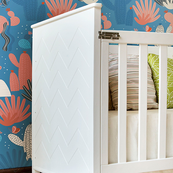 Elevate your nursery with the Art Nouveau Convertible Cot, featuring elegant design elements and the flexibility to adapt from a crib to a toddler bed, ensuring comfort and charm for your growing child.